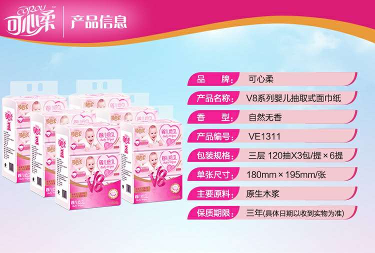可心柔 V8系列CoRou云柔系列白色木浆60抽
